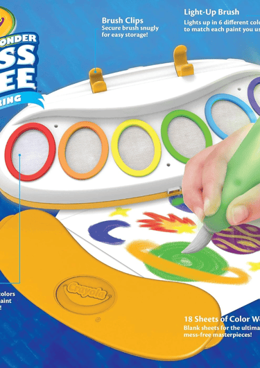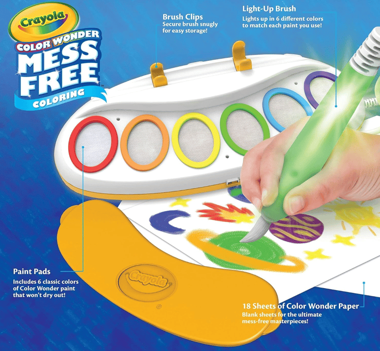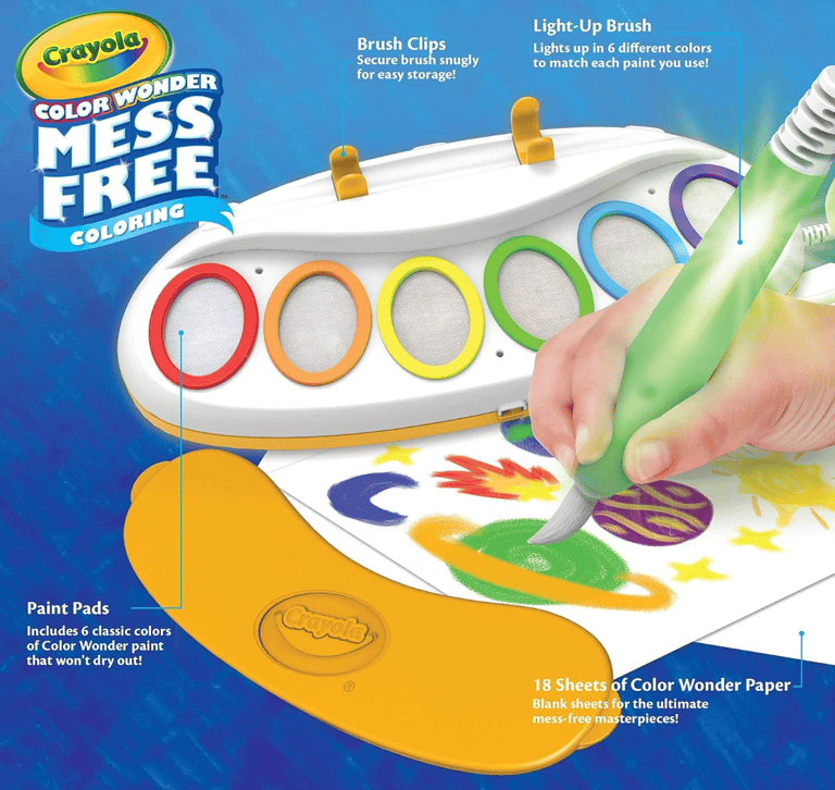 The Magic Light Brush is designed specifically for little hands, allowing them to paint and draw with ease. One of the best features is that it uses special Color Wonder inks that only appear on the Color Wonder paper, meaning no accidental mess on my walls, furniture, or carpets! This allows my toddler to get creative without the stress of clean-up.